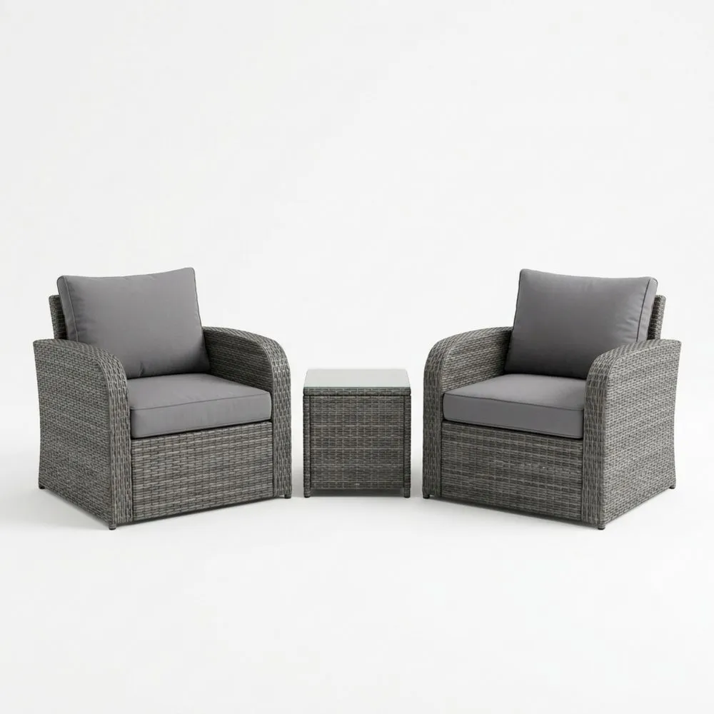 Polyrattan-Gartenmöbel-Set mit Sesseln und Glastisch, Grau