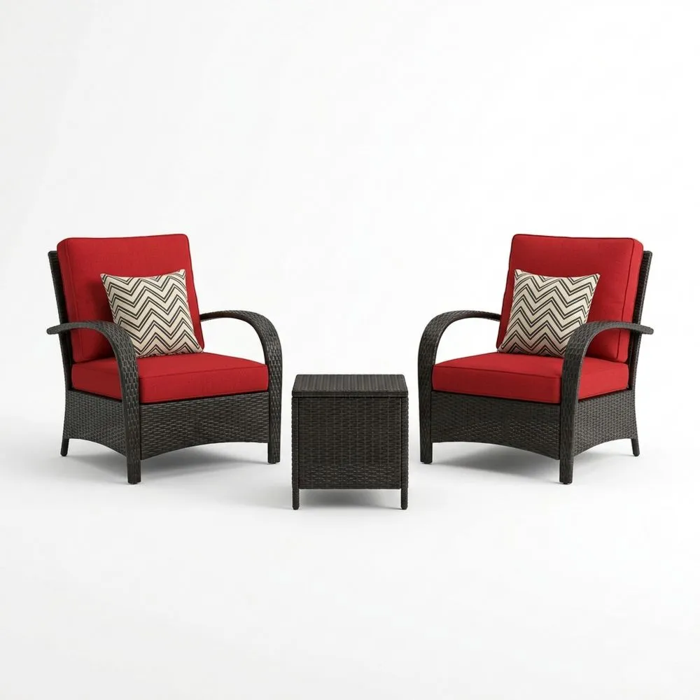 Rattan-Gartenmöbel-Set aus Polyethylen mit Stühlen und Tisch, Schwarz/Rot