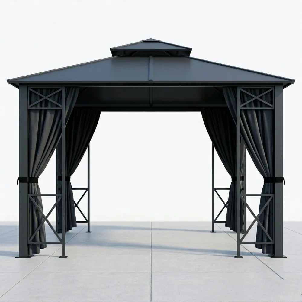 Aluminium Gartenpavillon Anthrazit mit Polyester Vorhängen
