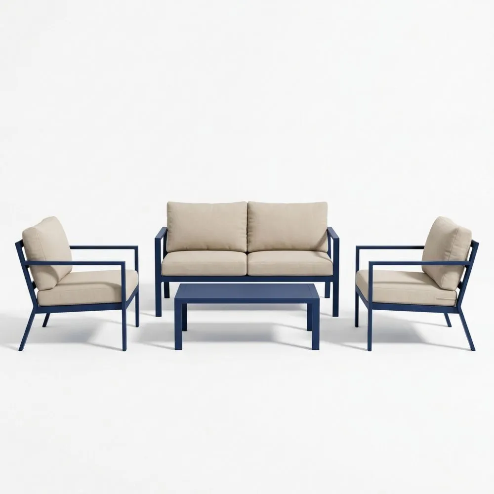Blaues Aluminium-Outdoor-Gartensofa-Set mit Polyesterkissen