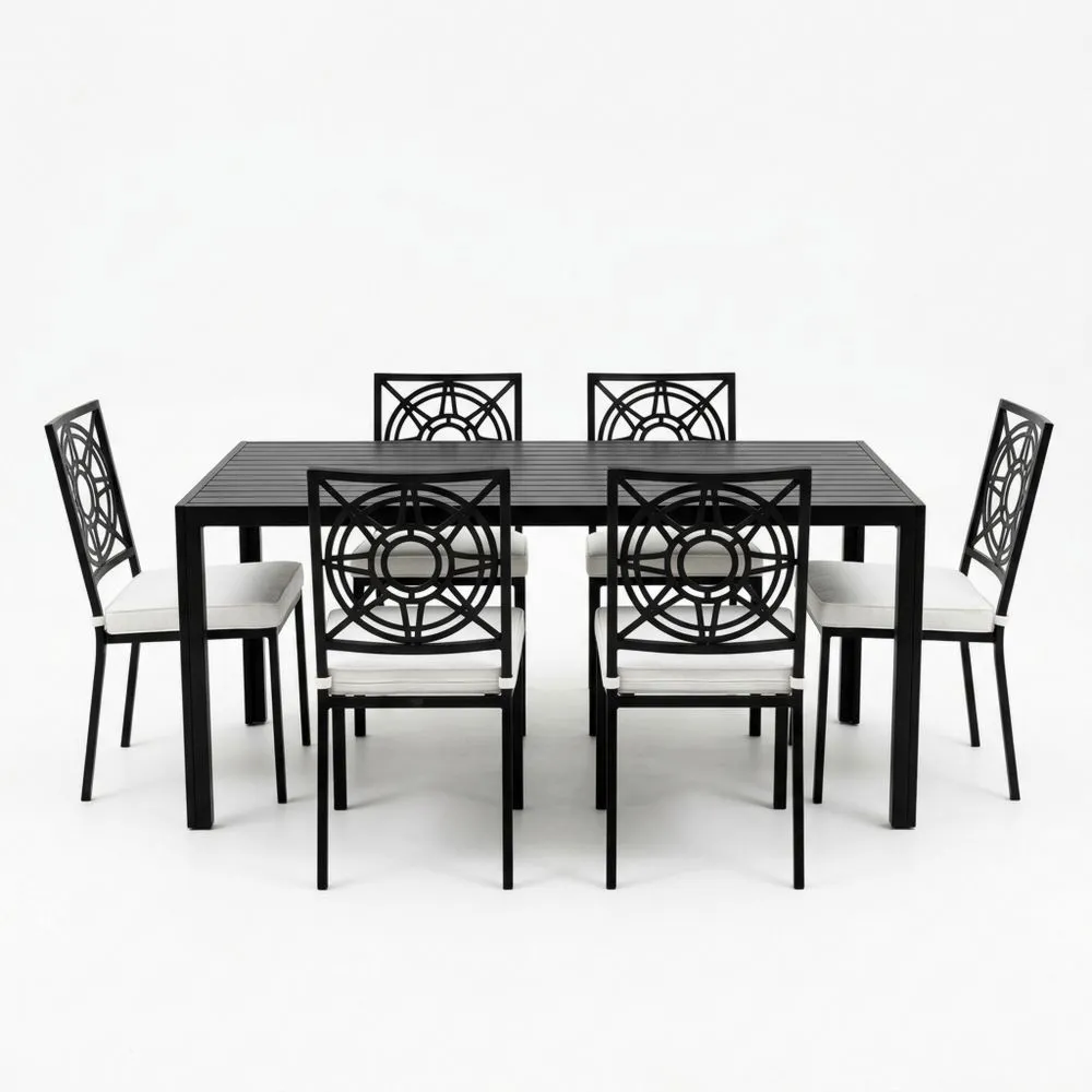 Garten-Essmöbel-Set aus Aluminium, Schwarz, Rechteckiger Tisch mit 6 Stühlen