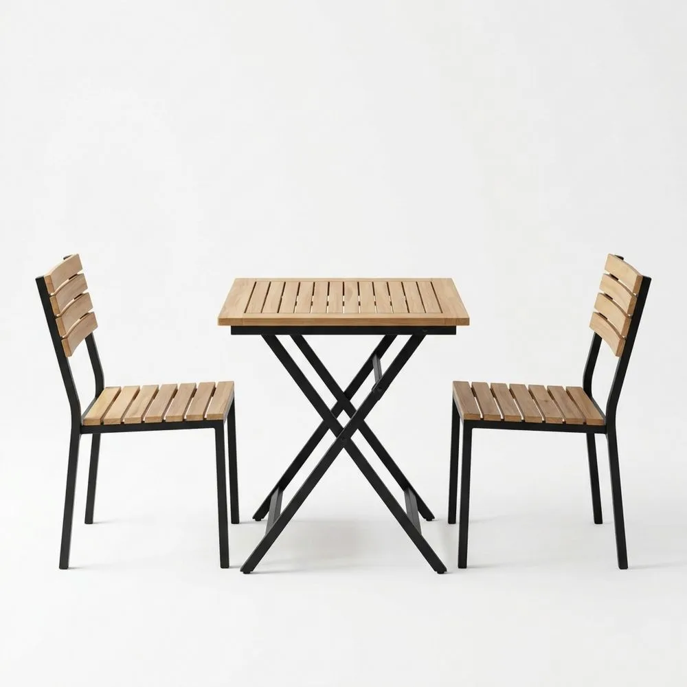 Garten-Essmöbel-Set mit Tisch und 2 Stühlen aus Akazienholz und Stahl, Braun/Schwarz