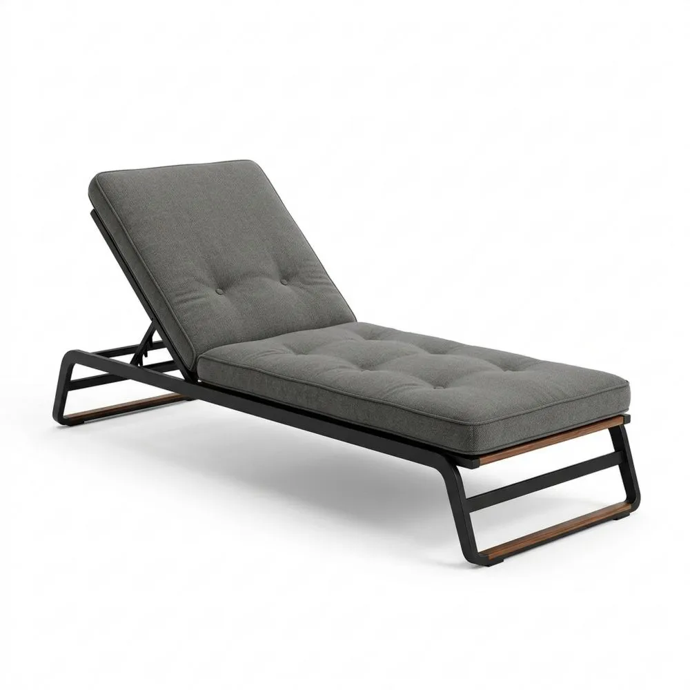 Gartenliege aus Aluminiumrahmen mit grauem Polyesterbezug, Länge 200 cm