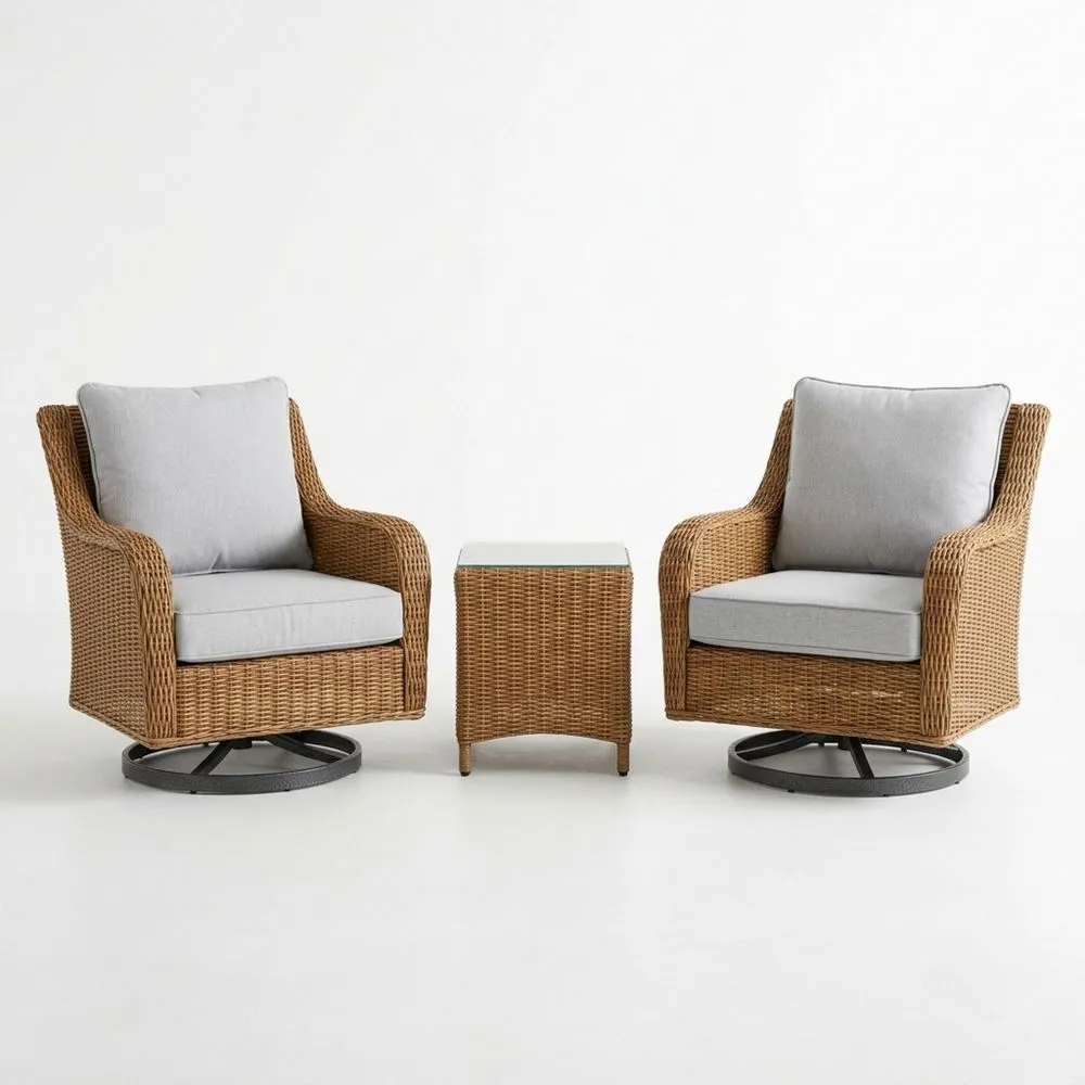 Gartenmöbel-Set aus Polyrattan mit Sesseln und Glastisch, Beige/Grau