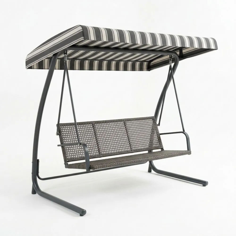 Gartenschaukel aus Stahl mit gestreiftem Sonnenschutz