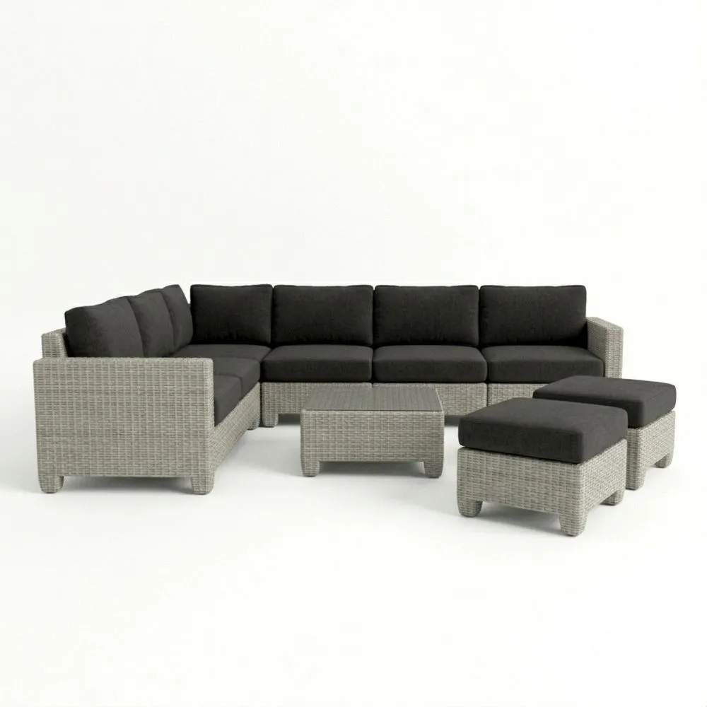 Outdoor-Gartensofa-Set aus Rattan mit schwarzen Kissen