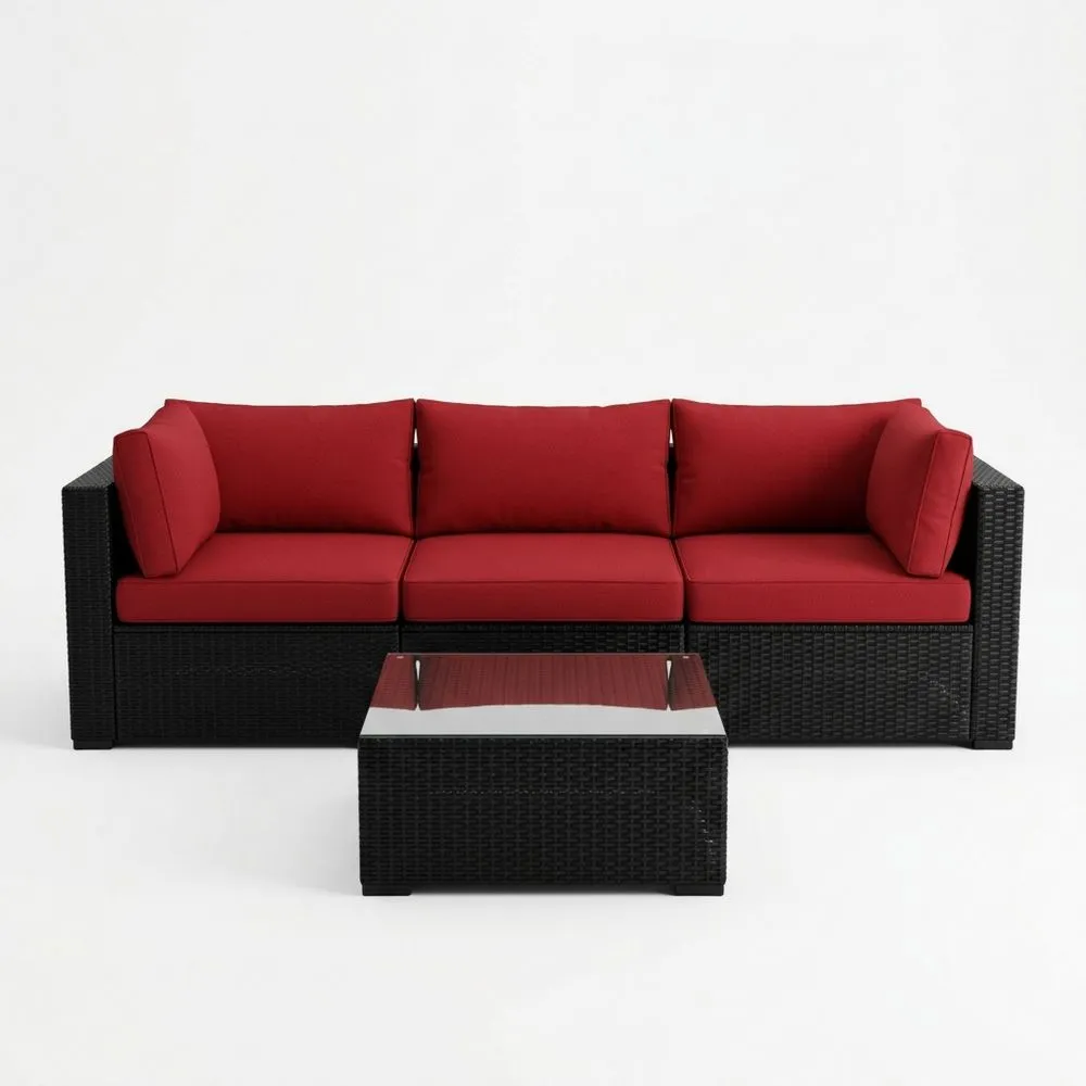 Polyethylen-Rattan Gartenmöbel Set Rot Sofa mit Couchtisch