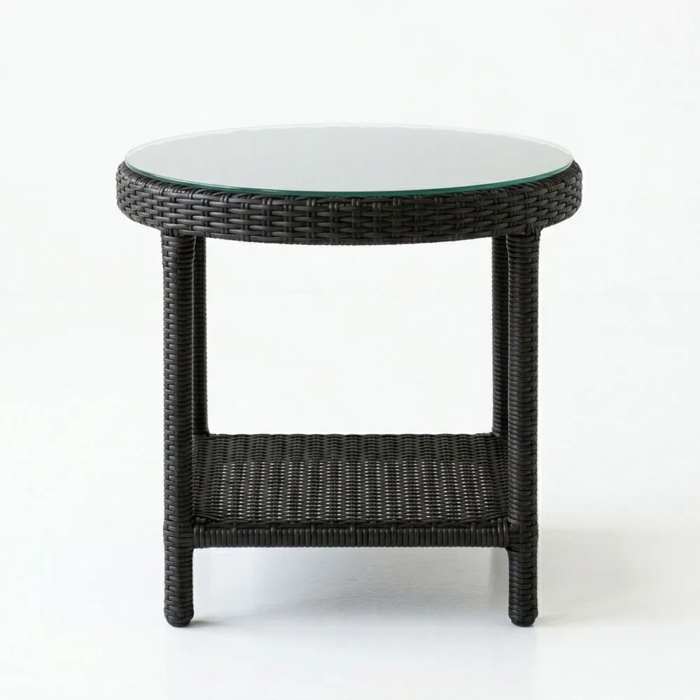 Runder Gartentisch aus Rattan mit Glasplatte, Dunkelbraun, Ø 50 cm