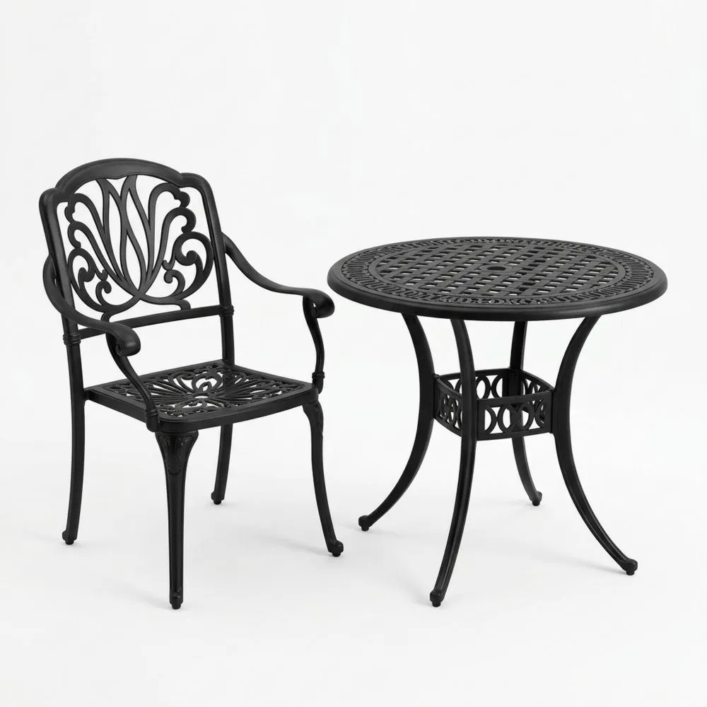 Rundes Aluminium-Gartenmöbel-Set, Schwarz, mit Stuhl und Tisch
